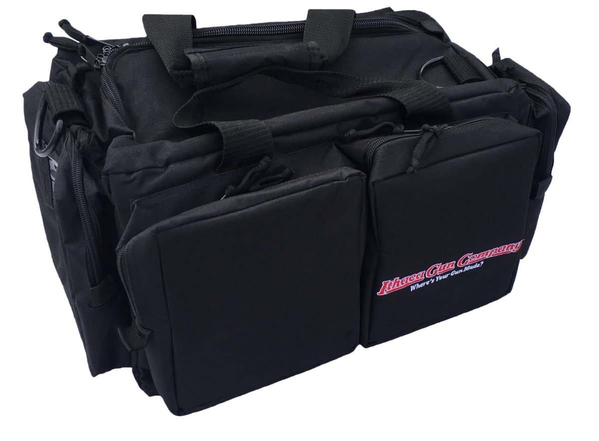 Black Ultimate Shooting Bag with Ithaca Logo has room for all your shooting supplies with 5 compartments, a removable tote and shell bag!