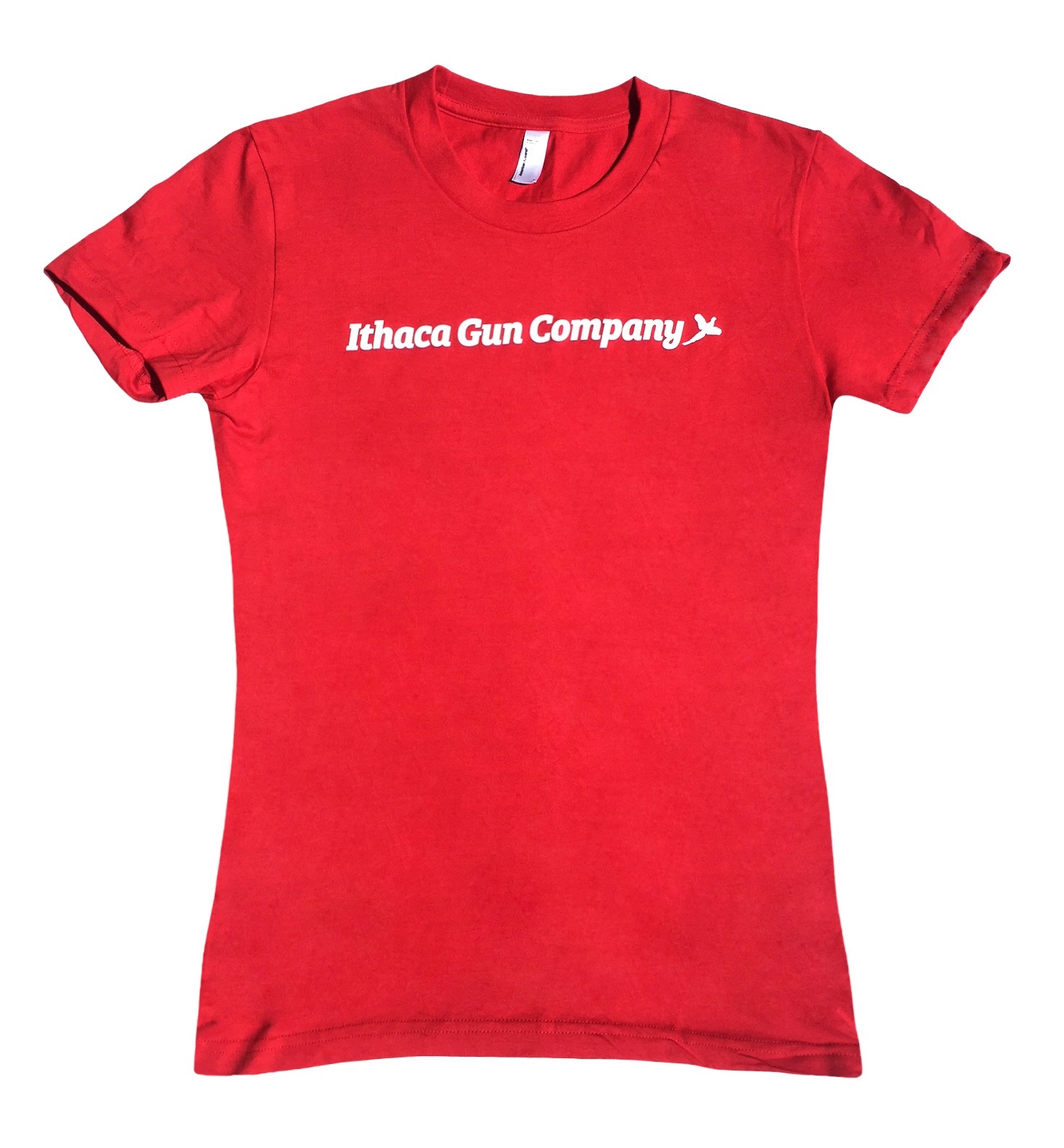 100% Cotton, Short Sleeve T-Shirt, American Made with Ithaca Gun Company Logo Across the Front, Red