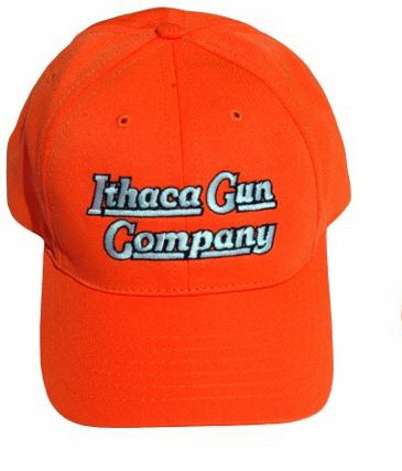Made in the USA, Safety Orange, 6 panel, embroidered Classic Ithaca Gun Logo with adjustable velcro backstrap.